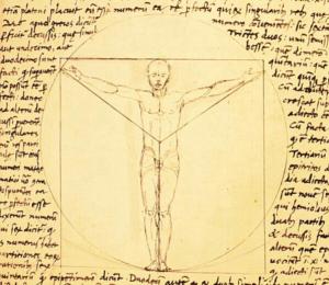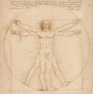 L’uomo vitruviano di Leonardo da Vinci, 1490 circa.