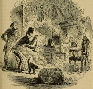 Un’illustrazione da “Bleak House” di C.Dickens (1895), che raffigura il ritrovamento del corpo carbonizzato di Krook.