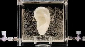 L’artista Diemut Strebe, dopo aver tentato senza successo di acquisire materiale genetico di Van Gogh, ha ripiegato su una sua discendente, Lieuwe Van Gogh, pronipote del fratello di Vincent, Theo Van Gogh. Ottenuti i campioni genetici, ha usato una stampante 3D per modellare le cellule nella forma del famoso orecchio tagliato. L’organo è attualmente mantenuto in vita in un liquido nutritivo, e si trova in mostra al museo di arte moderna ZKM dove è anche possibile “parlare” con il pittore scomparso: i suoi emesssi dalle voci vengono processati da un software che poi provvede a stimolare in tempo reale gli impulsi nervosi dell’organo, come accadrebbe in un normale corpo umano.