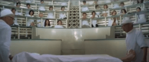 La sala torture – ma con strumenti chirurgici proveniente dall’ambiente della medicina – in “Brazil” di Terry Gilliam, 1985.