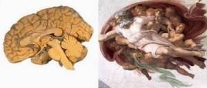 Sezione di cervello e dettaglio della Cappella Sistina di Michelangelo.