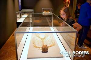 Una delle teche della Real Bodies dove è esposto un vero sistema nervoso centrale.