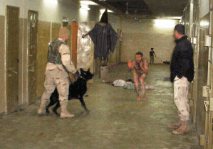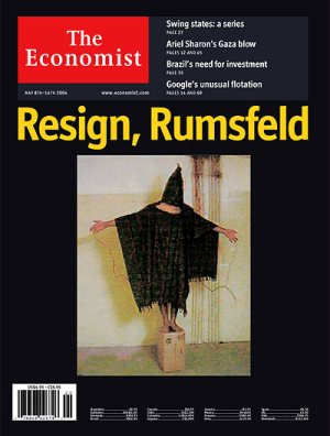 Uno scatto delle violazioni dei diritti umani perpetrate ad Abu Ghraib, in Iraq, da parte di personale dell’Esercito degli Stati Uniti e della CIA, durante gli eventi della guerra in Iraq iniziata nel marzo 2003. Queste violazioni inclusero abusi fisici e sessuali, torture, stupri, sodomizzazioni e omicidi. Sotto, la copertina dell’Economist.